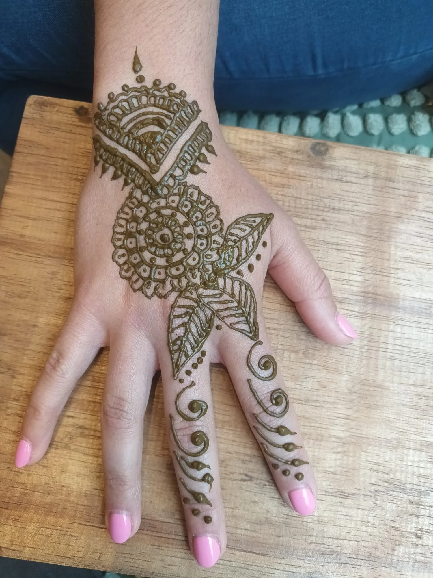 The henna will darken over the next 24 hours, leaving you with a beautiful temporary died pattern on your skin.